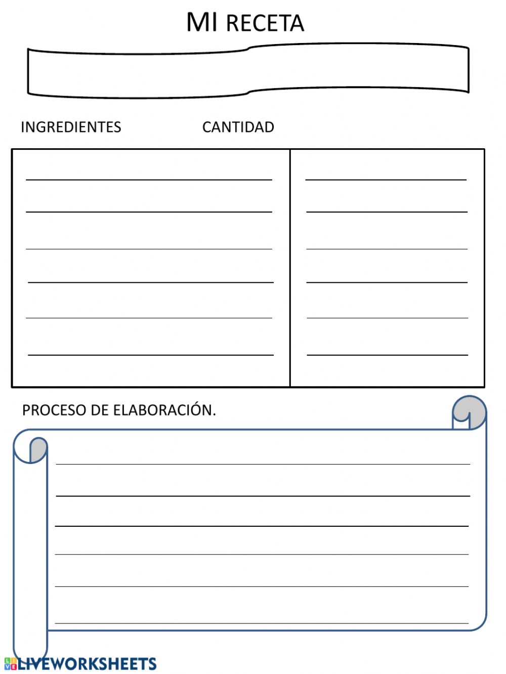 Buscar y redactar una receta saludable con la familia y explicarla a los compañeros.Puedes seguir este modelo: