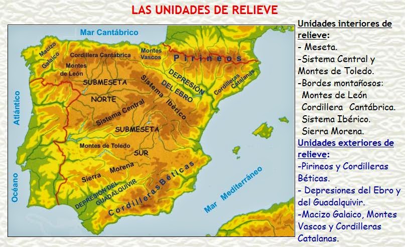 Realiza un esquema con las principales unidades del relieve interior peninsular.