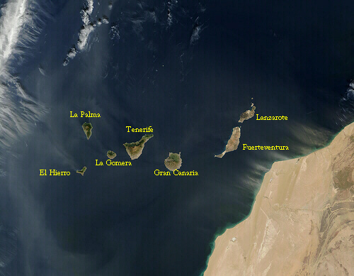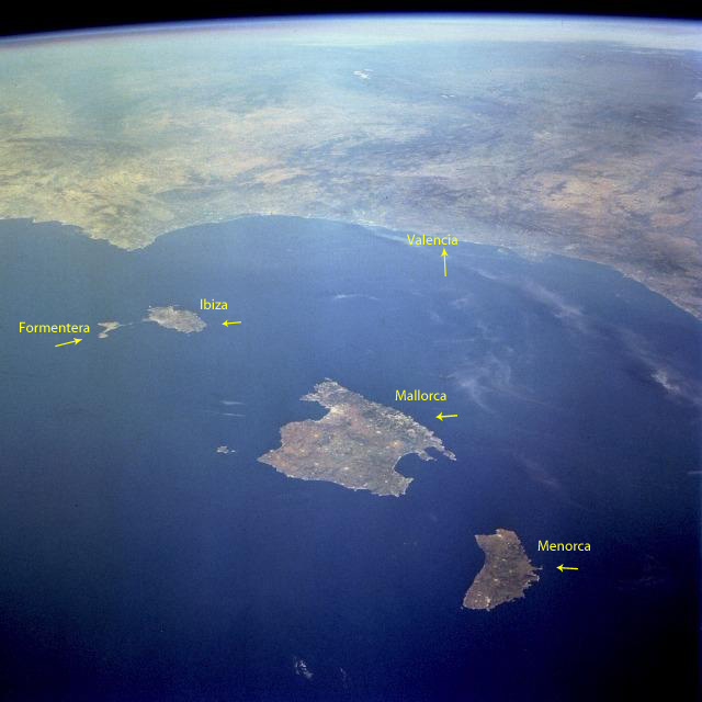 Son vistas aéreas de los dos archipiélagos españoles: Las Islas Baleares y las Islas Canarias.