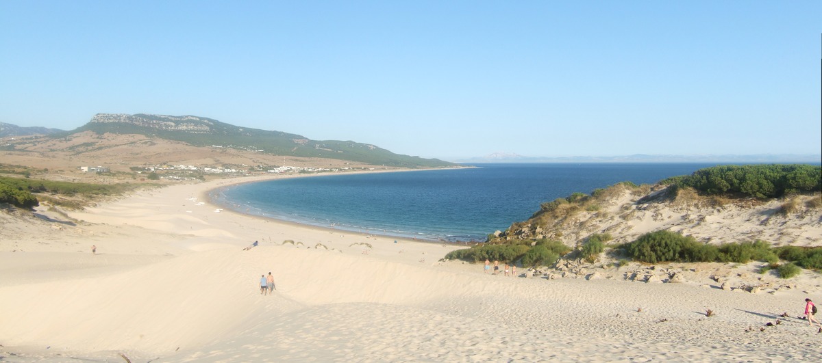 +La costa andaluza: Se extiende desde la frontera con Portugal hasta el estrecho de Gibraltar. Es una costa recta, baja, arenosa y llana, con numerosas playas, marismas y dunas.