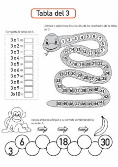 - Los resultados de la tabla del 3 se calculan contando de 3 en 3.