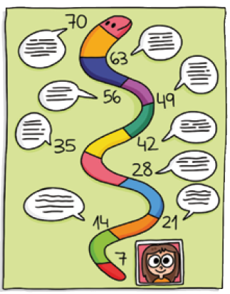 Paso 1. En una cartulina, dibuja una línea del tiempo con los resultados de la tabla del 7. Imagina que tienes esos años y escribe en cada uno algo que te gustaría realizar cuando los cumplas.