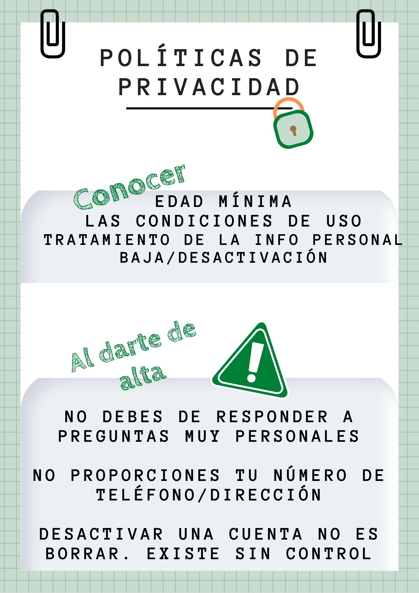 - La política de privacidad, puede ser que estés autorizando a los propietarios de la red social a que utilicen tus datos.